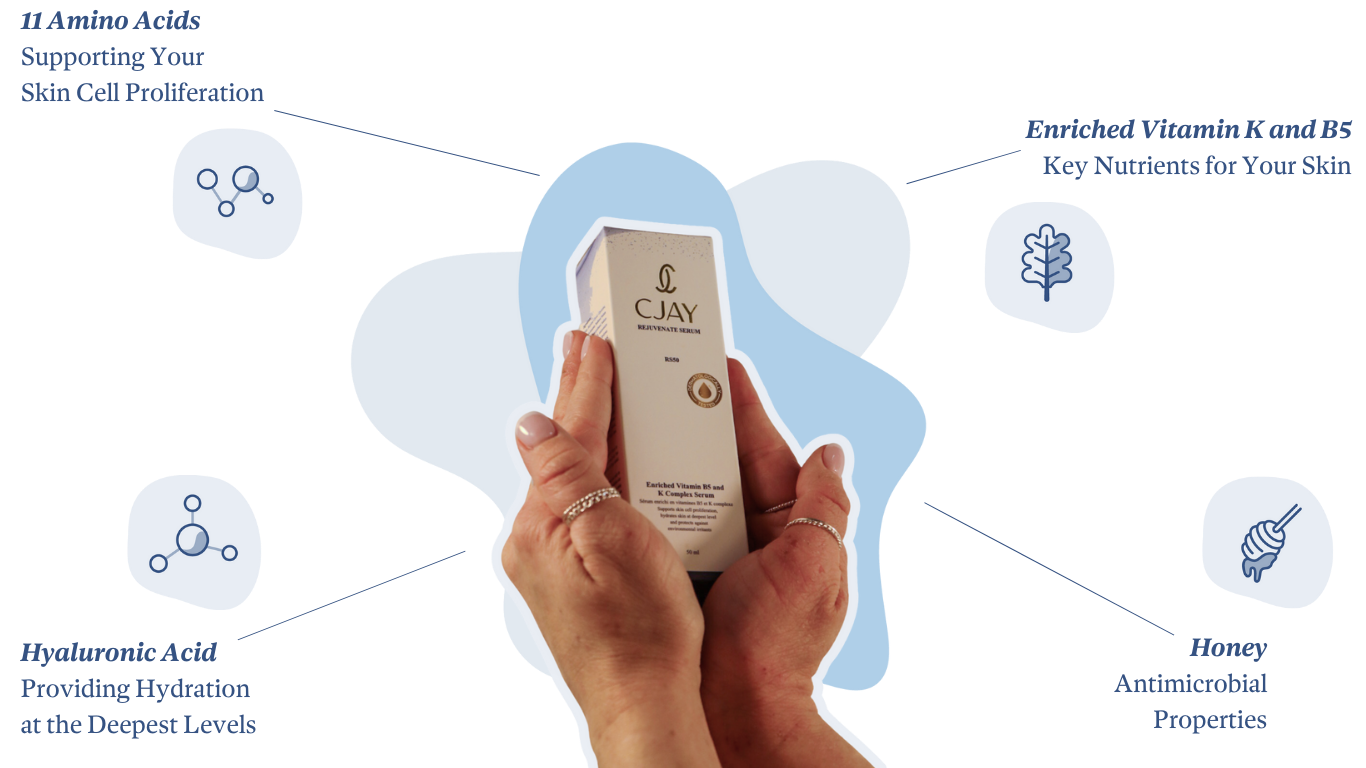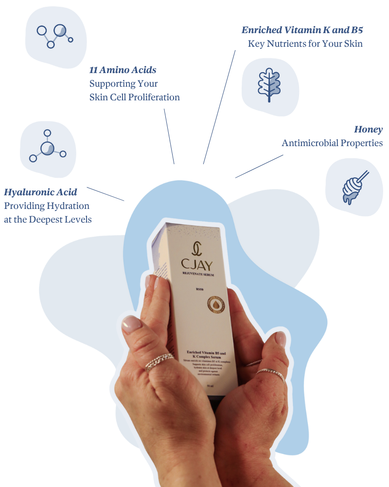 "CJAY Rejuvenate Serum is my skin's safety blanket! It makes me feel protected, comfortable and like my skin is truly healing! Finally!❤️"